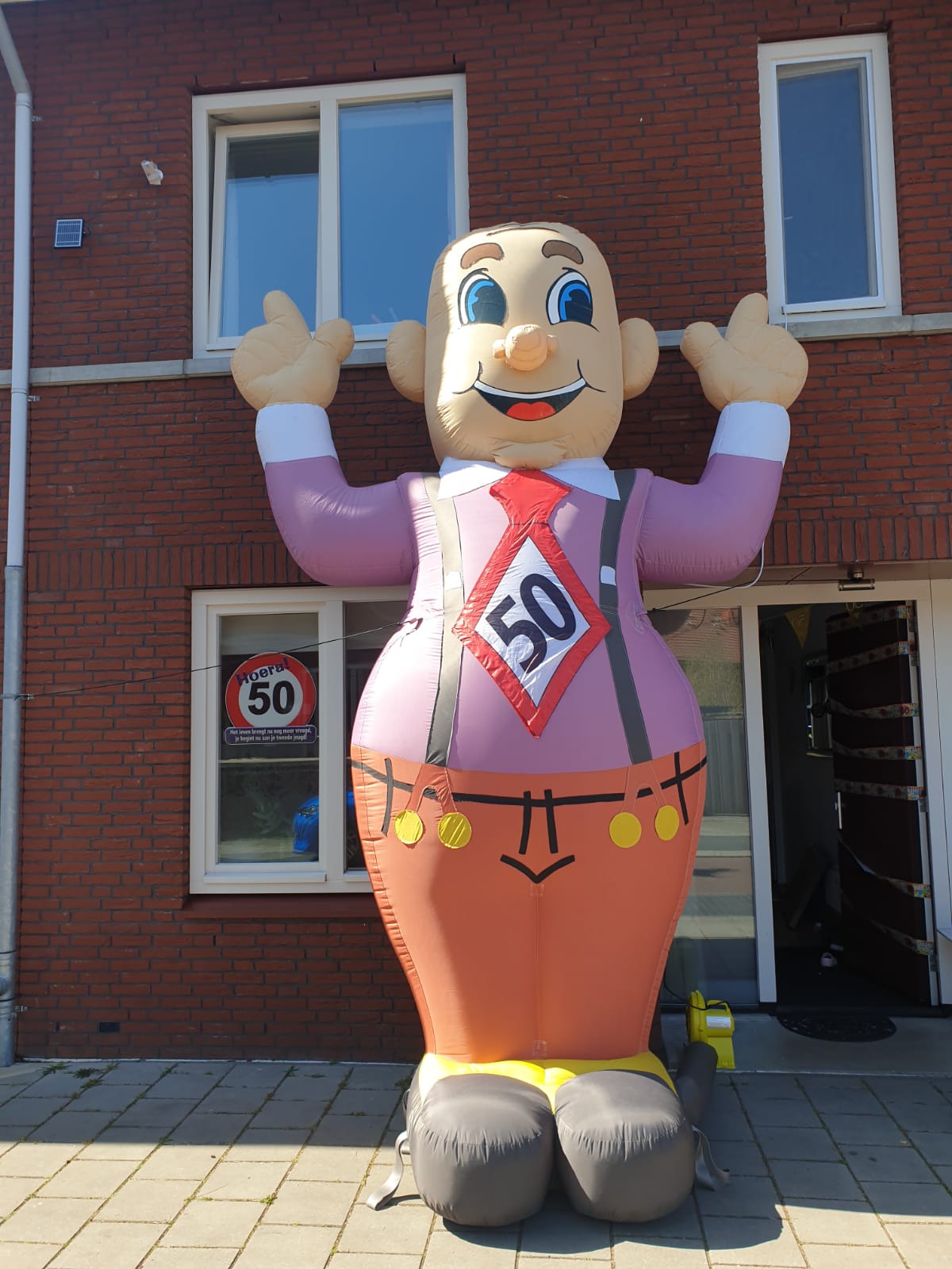 Het opblaasfiguur moet een verrassing blijven voor de jarige, hierdoor kunt u er ook voor kiezen om het opblaasfiguur op een adres of bij de buren te laten bezorgen. Hierdoor heeft de jarige echt niks in de gaten. Het opblaasfiguur zit in een gemakkelijke transporttas met een blower apart erbij geleverd. Hierdoor kunt u gemakkelijk zelf nog het opblaasfiguur vervoeren naar de gebruiksplaats.