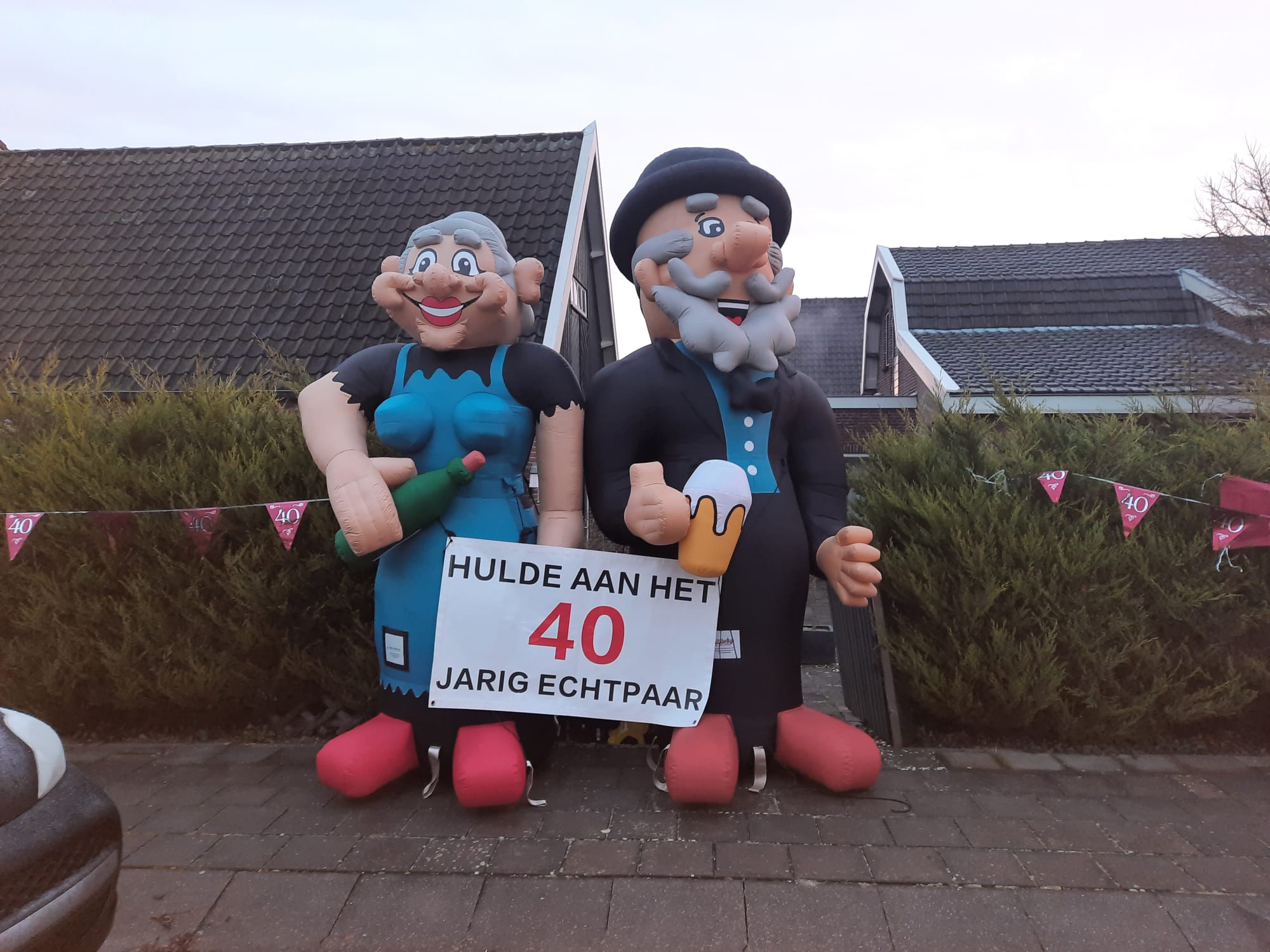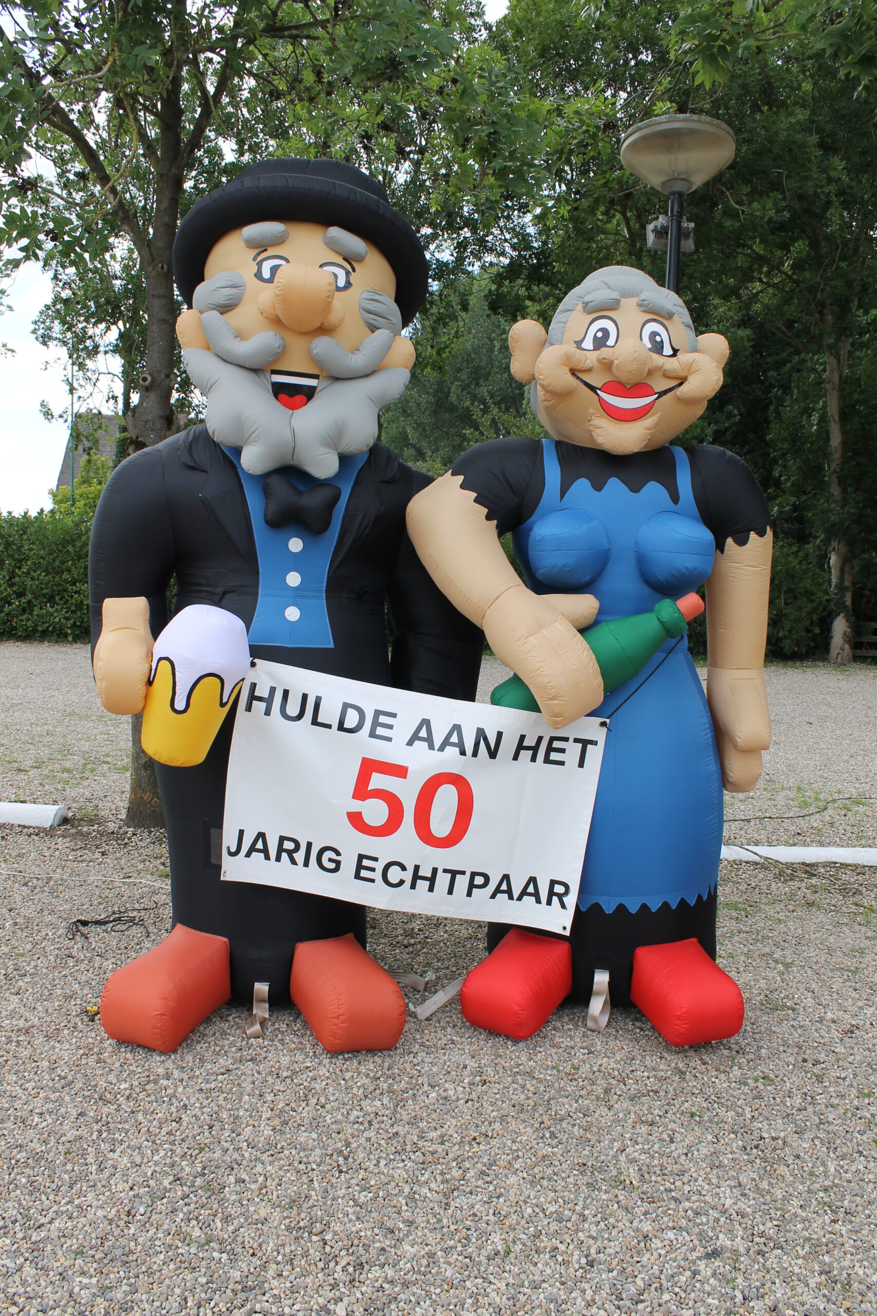 Hulde aan het bruidspaar (cartoon) Met bijpassende banner (b.v. hulde aan het 25 jarige echtpaar) een geweldige surprise!