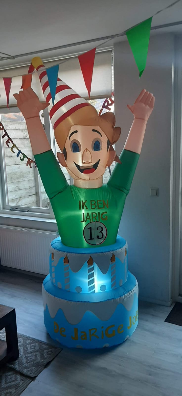 Een indoor opblaasfiguur is dé perfecte aanvulling voor een geslaagd feestje voor de jarige. Omdat het altijd in de buurt is bij de jarige binnen in het huis/appartement/verzorgingstehuis etc.